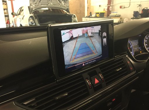 Unusually this new Audi RS6 Avant came without a reversing camera . We have installed our aftermarket kit that works in the same way as the factory version and used a vehicle specific camera which is integrated in to the rear boot handle . Please call for further information .