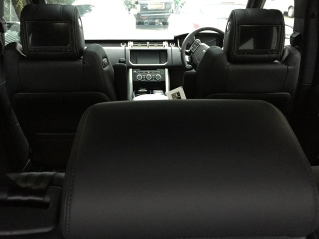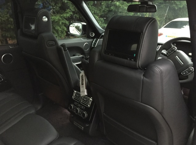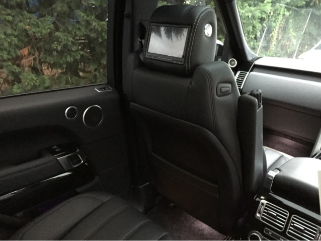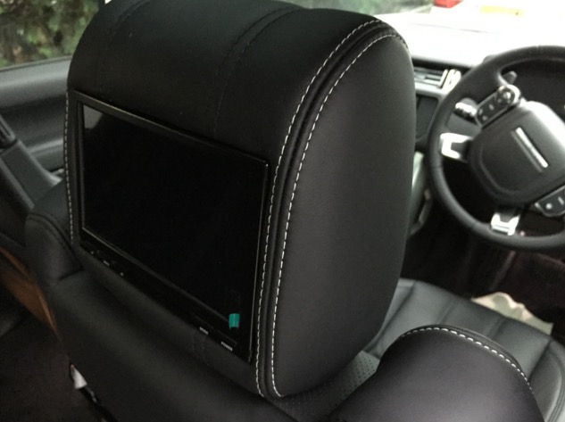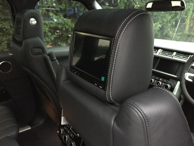 We have just installed our standard headrest package to this 2015 Range Rover Voque , the system included 2 x 7inch Widescreen Headrest Monitors , DVD Player ( single disc flush fitted in to glove box ) 2 x Cordless Headphones and sound through the car speakers . Installation on the package takes 7-8 hours to complete . Please call us for further information .